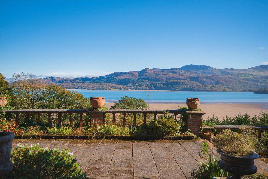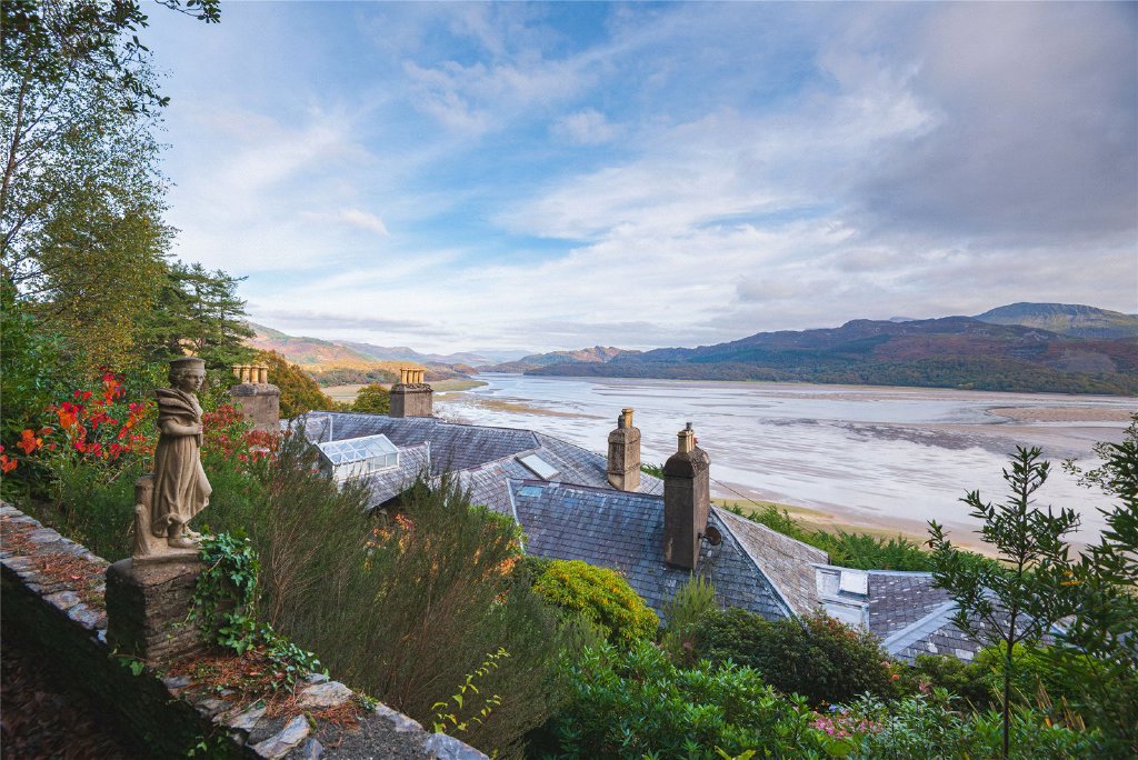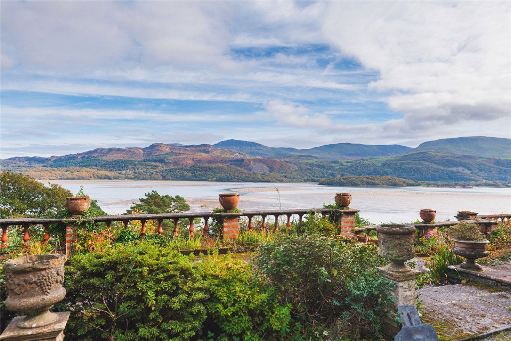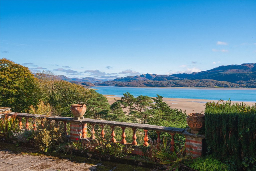 Commanding a spectacular position above the Mawddach Estuary with panoramic views towards the peaks of Cadair Idris, Glan y Mawddach is a truly remarkable Regency villa located just outside the charming coastal town of Barmouth. This elegant Grade II listed six-bedroom residence is set within approximately 35 acres of extraordinary terraced and woodland gardens, themselves listed Grade II* for their exceptional historical and horticultural value.