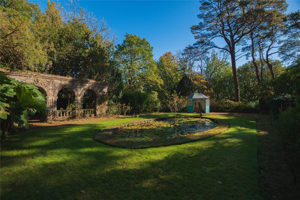 Among the most captivating areas is an Italianate pond garden connected to a secret natural swimming pool fed by a cascading waterfall, surrounded by mature redwoods with stone arches and a summer house. Elsewhere, discover a historic Victorian walled garden, a dovecote, and a vibrant wisteria draped trellis—just a few of the garden’s many hidden treasures.