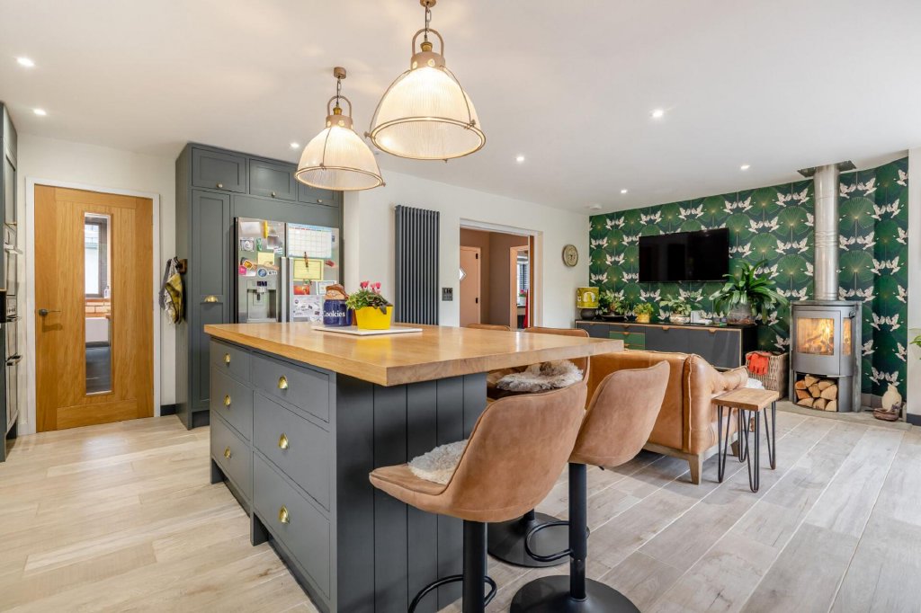 The house is filled with light and warmth, its style a blend of industrial and Scandinavian influences. Layered lighting allows us to change the mood at any time, while wood burners in both living spaces add comfort and charm. For us, it’s been the perfect mix of modern practicality, character, and location, close to excellent schools and ideal for family life.