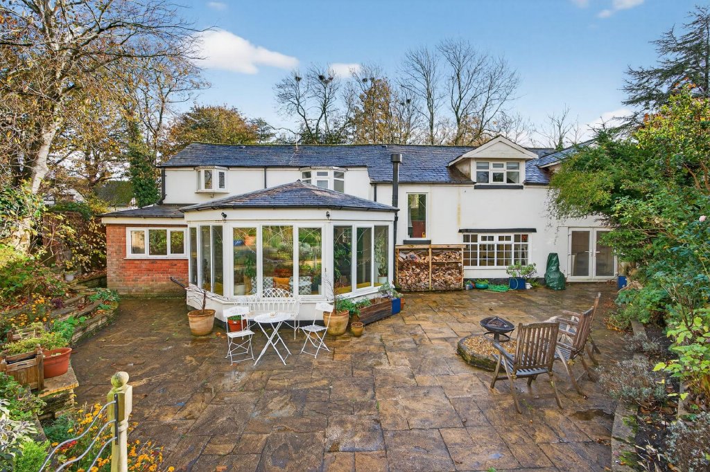 - Large, private rear garden with patio, raised decking, and generous lawn