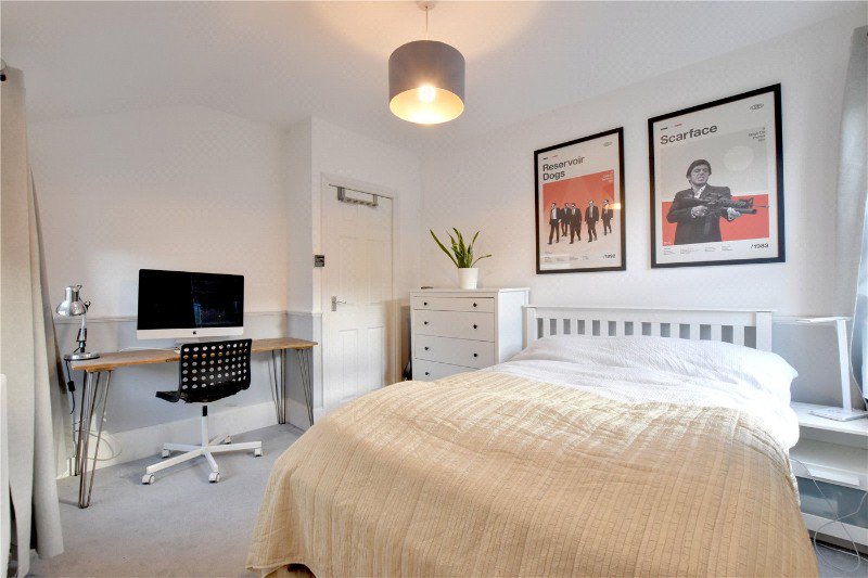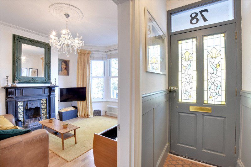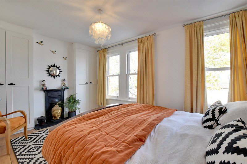 The accommodation comprises; a feature stained-glass front door opening into a panelled hallway with handy under-stairs storage and a guest WC. There are two elegant reception rooms, each anchored by a period fireplace, with high ceilings, wood flooring, double-glazed sash windows and feature radiators adding warmth and substance. To the rear, the kitchen/diner is the everyday heart of the home, designed for cooking and gathering, opening directly to the garden via wide doors for an easy inside-outside flow. Upstairs, the large principal bedroom spans the front, complemented by two further generous doubles and a family bathroom. Outside, the rear garden extends to around 50ft, offering ample space for play, planting and alfresco dining.