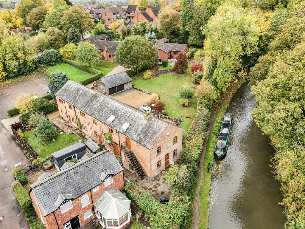 Upstairs, the main house hosts four spacious double bedrooms and three well-appointed bathrooms. A particular highlight is the elegant first-floor lounge, where expansive windows frame captivating views over the mature gardens and the tranquil waters of the Oxford Canal—an idyllic setting for relaxing and unwinding.