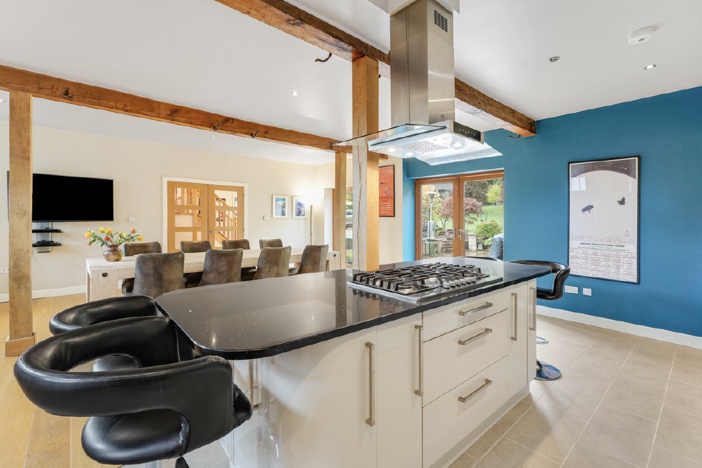 - Impressive open plan kitchen/dining/family room with doors opening to the garden.