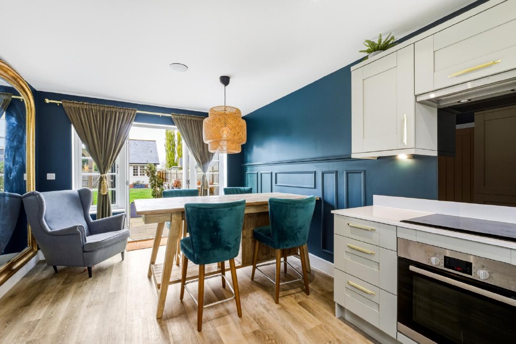 The Accommodation A part glazed front door opens into a lovely spacious hallway running through the middle of the house, to the left of the hallway is the dual aspect lounge with feature woodburning stove and French doors opening onto the rear garden. To the rear of the hallway a door opens into the dual aspect dining area with paneled walls and solid oak floor flowing into a beautiful kitchen, fitted with a good range of base and wall units with granite work surfaces over; integrated appliances including electric oven and induction hob, French doors open from the dining area onto the rear patio. A downstairs w/c completes this floor.