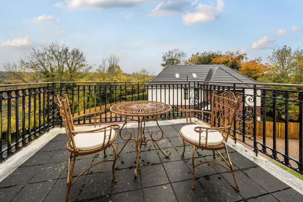 The galleried first floor continues to impress, with a spacious principal bedroom suite enjoying built-in wardrobes, a luxurious en-suite double shower room, and French doors opening onto a delightful balcony that provides far-reaching views over the surrounding landscape. Four further double bedrooms provide excellent family accommodation, with two sharing a stylish “Jack and Jill” bathroom and both featuring walk-in dressing rooms. A contemporary family bathroom and a separate WC serve the remaining bedrooms.