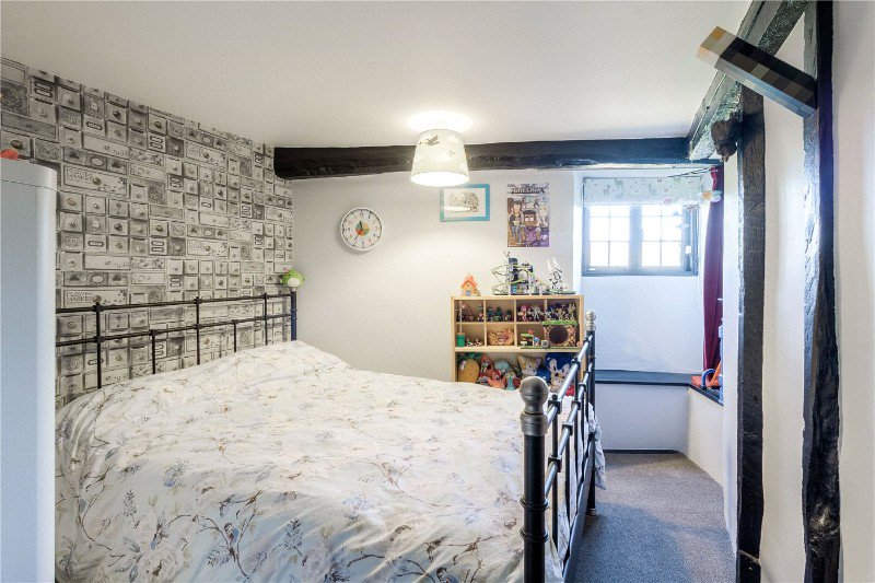 On the first floor, a landing provides access to two bedrooms. The front bedroom benefits from having a fitted wardrobe, exposed beams and two window seats. The rear bedroom also has exposed beams and a feature window seat, with a view over the adjacent field. A wide dog leg staircase leads up to the main bedroom on the second floor. The main bedroom features exposed beams, window seating and exposed stone walls with space for wardrobes.