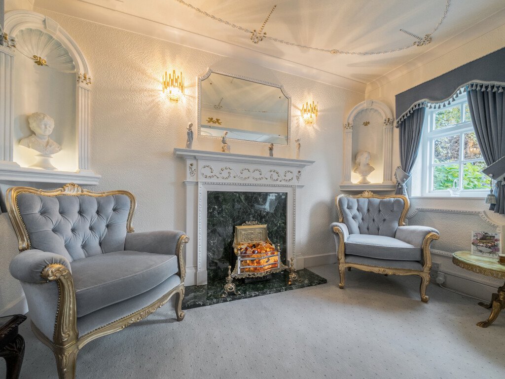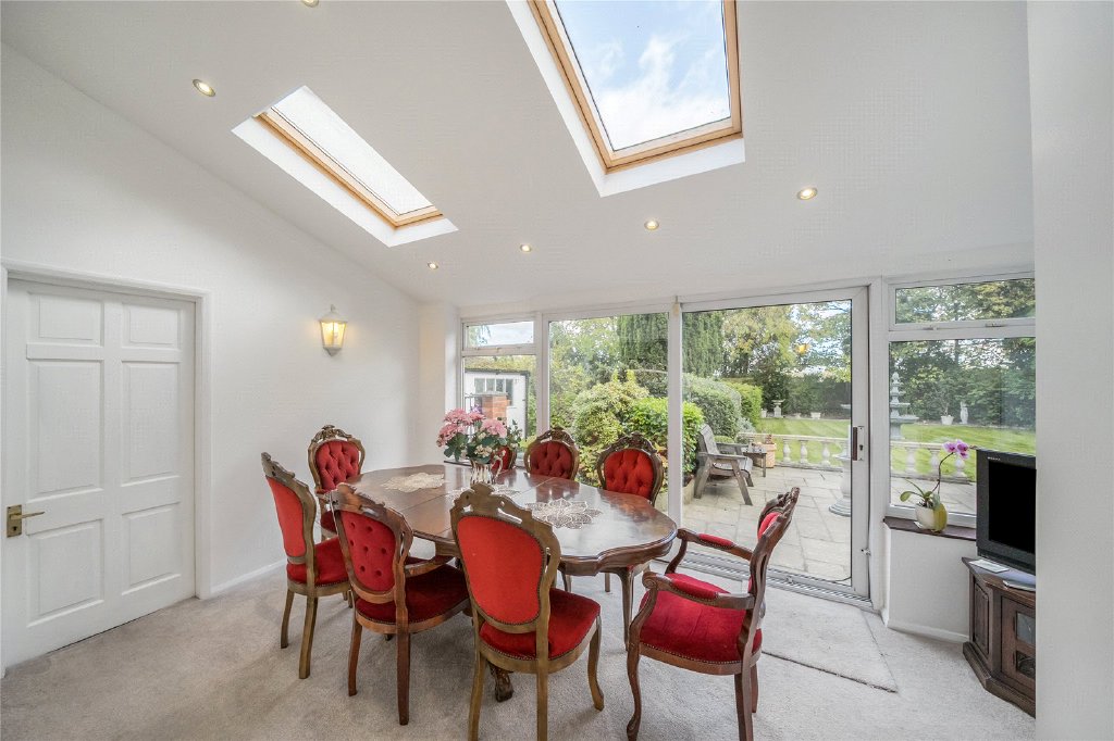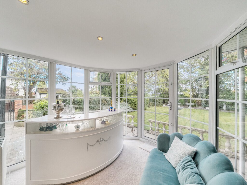 The heart of the home lies to the rear, where a stylish and well-appointed kitchen opens through to an additional dining area. The sitting room — a versatile space ideal for family gatherings and everyday living is also located to the rear of the property, from here, French doors lead into a delightful conservatory overlooking the garden, offering a tranquil retreat to enjoy the views across the landscaped grounds.