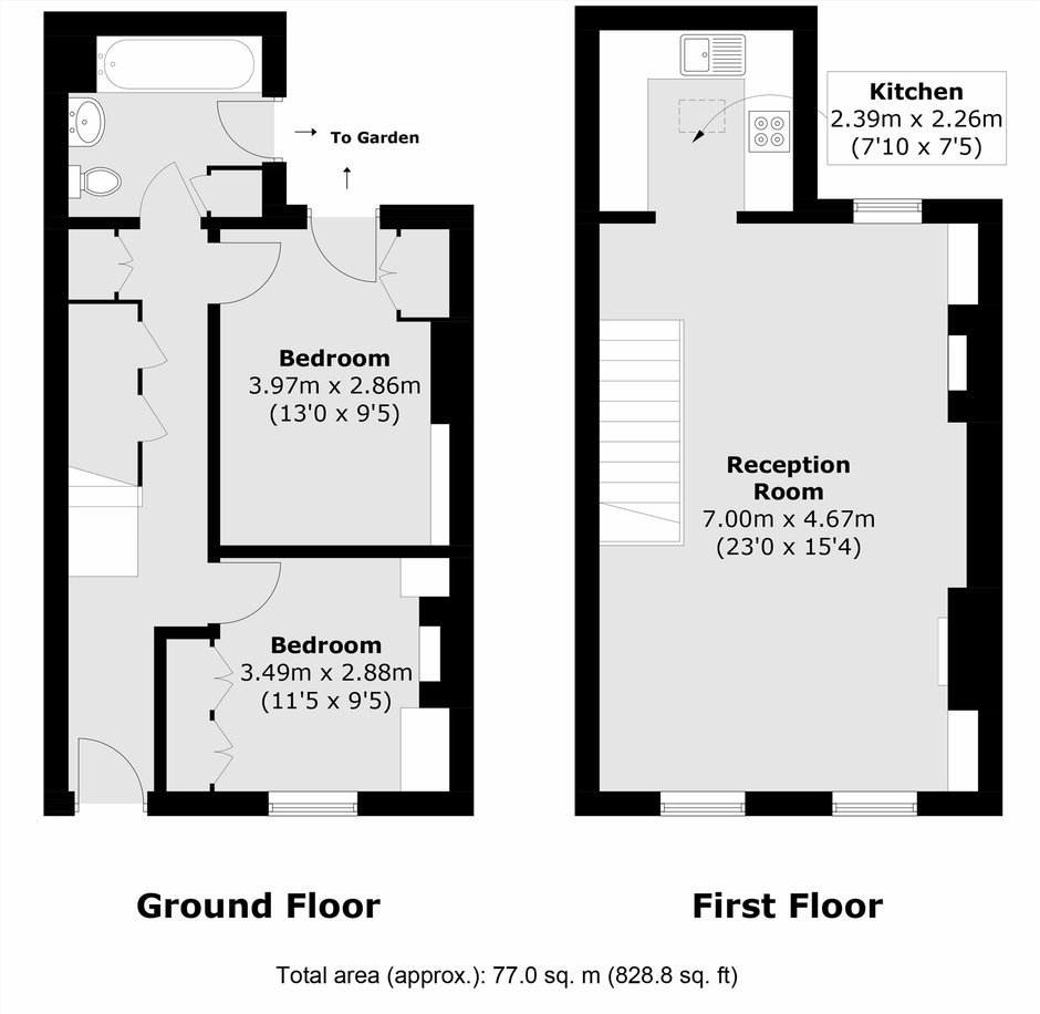 A two double bedroom freehold house on the famous Jesus Green Estate, with a private south facing garden. This property has been rebuilt to the style of the estate, and has been arranged with the living area upstairs to maximise space and light. There is a newly refurbished kitchen, spacious living area with feature fireplace and sash windows.