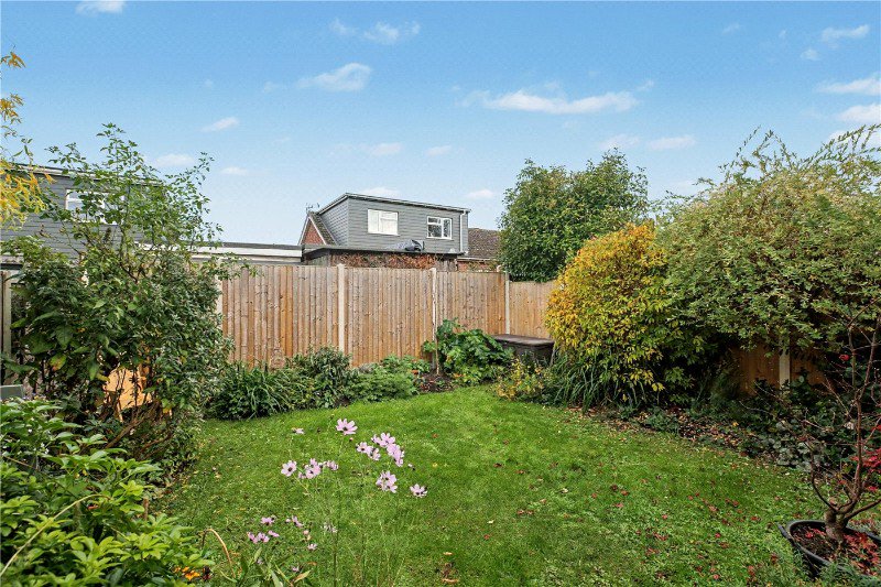 Outside, the rear garden is a real highlight; fully enclosed and mainly laid to lawn, with well-stocked beds and mature shrub borders providing a peaceful and established setting. To the front, the garage has been partially converted, creating a very handy storage space ideal for bikes, garden equipment, or leisure items. A double-width gravel driveway to the front provides ample off-road parking.