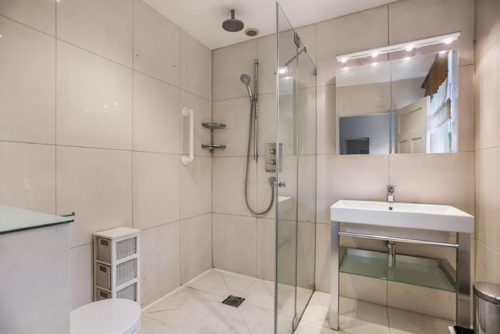 There are seven bedrooms on the first floor, two of which are en-suite. Four bedrooms form the main property with three as part of the annexe. The bedrooms in the main house are set along an elegant, generously proportioned, luminous hallway that opens onto a charming external terrace. There is plenty of storage space at this level and each bedroom enjoys wonderful framed views of the gardens. A contemporary family bathroom sits between the main property bedrooms and the annexe rooms and is fitted with a spa bath, rainfall walk-in shower and double sink unit, decorated in a relaxing muted palette.