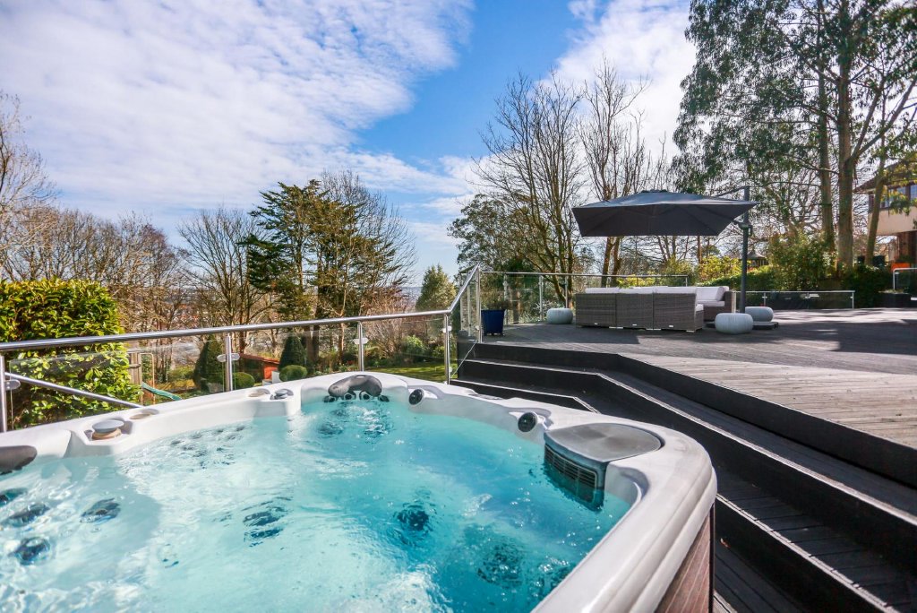 Mature trees and shrubs create privacy at all levels and at the very far end of the garden, a self-contained fully-equipped gym with external water features offers the ideal place for at-home fitness.