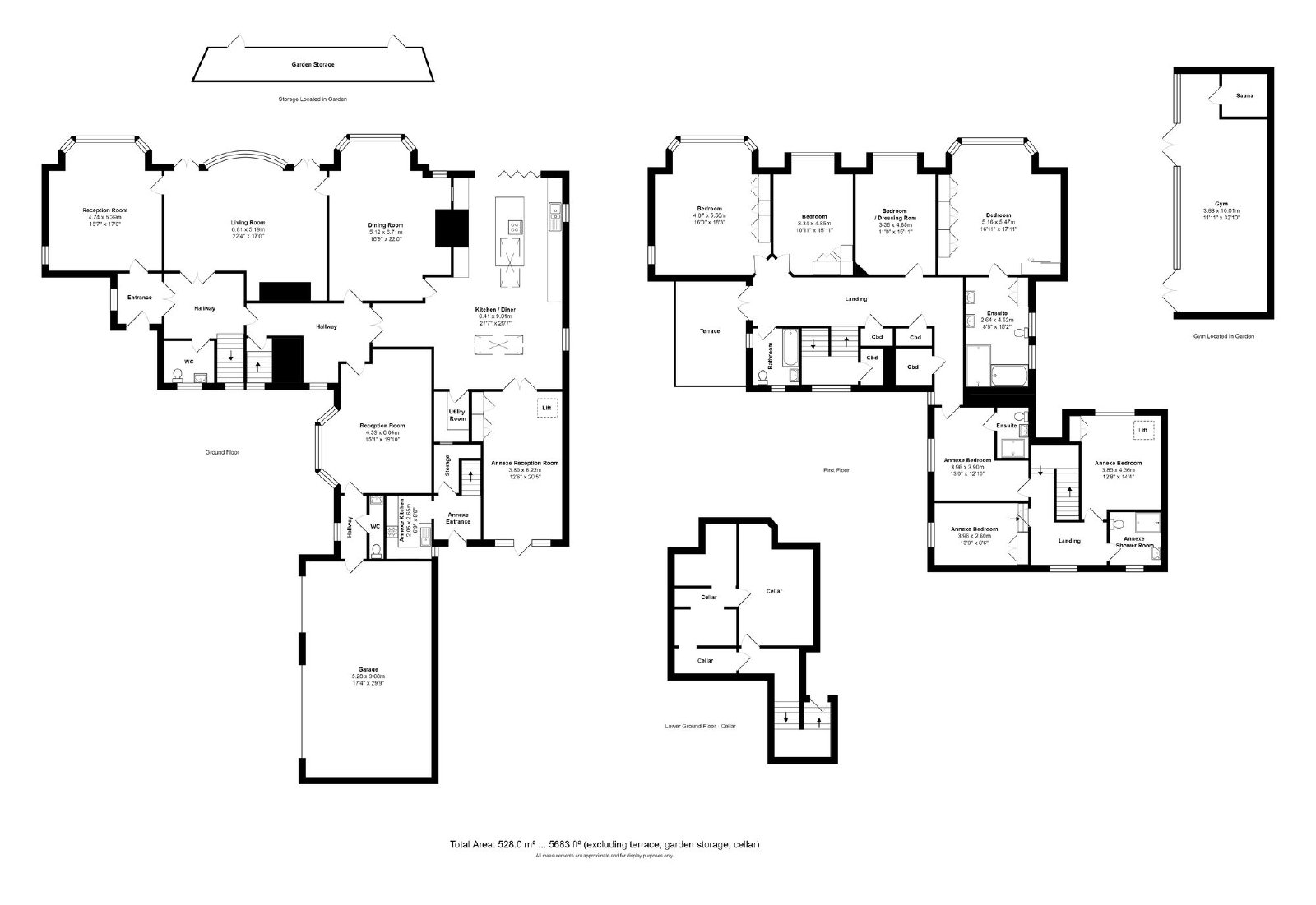 A lower ground floor cellar with three storage zones completes the footprint of the property. This space adds valuable flexibility to the home's layout.