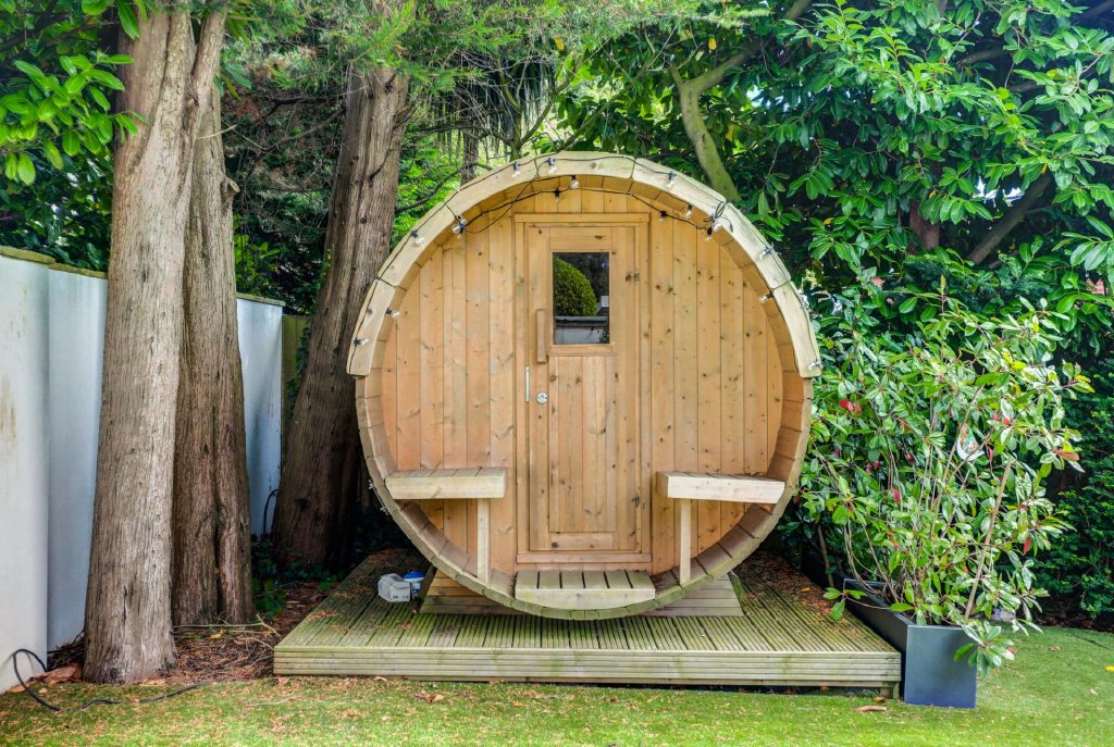 Bordered by a range of tall mature shrubs and trees that provide colour and interest throughout the seasons, an established lawn supplies a safe space for children to play, while an additional raised patio means that you can sit back and enjoy a wonderful amount of summer sun.
