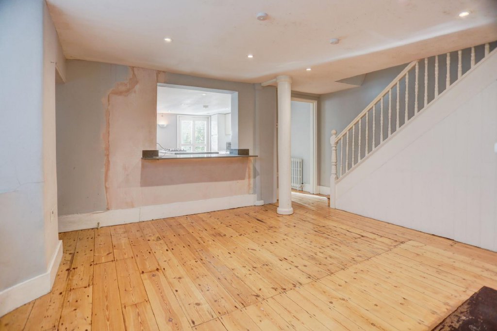 On entering from the lower ground floor, a fantastic boot room provides access to all rooms and offers a handy spot to store outdoor shoes and coats. To the front is a modern statement j-pull kitchen and dining room, decorated in grey to unite a vast range of period characteristics; a distinctive south facing curved bay window and French door pours light into the room accentuating the space with a sizable central island and breakfast bar as a focal point. A gulf of base and wall mounted cabinets line the room taking full advantage of space. At the rear is the separate dining area and convenient utility room/pantry. Reaping the very most from the afternoon sun, the kitchen leads on to a delightful garden; the ideal spot for al fresco dining in the summer months. Handy under stair storage cupboards are accessible from the hallway.