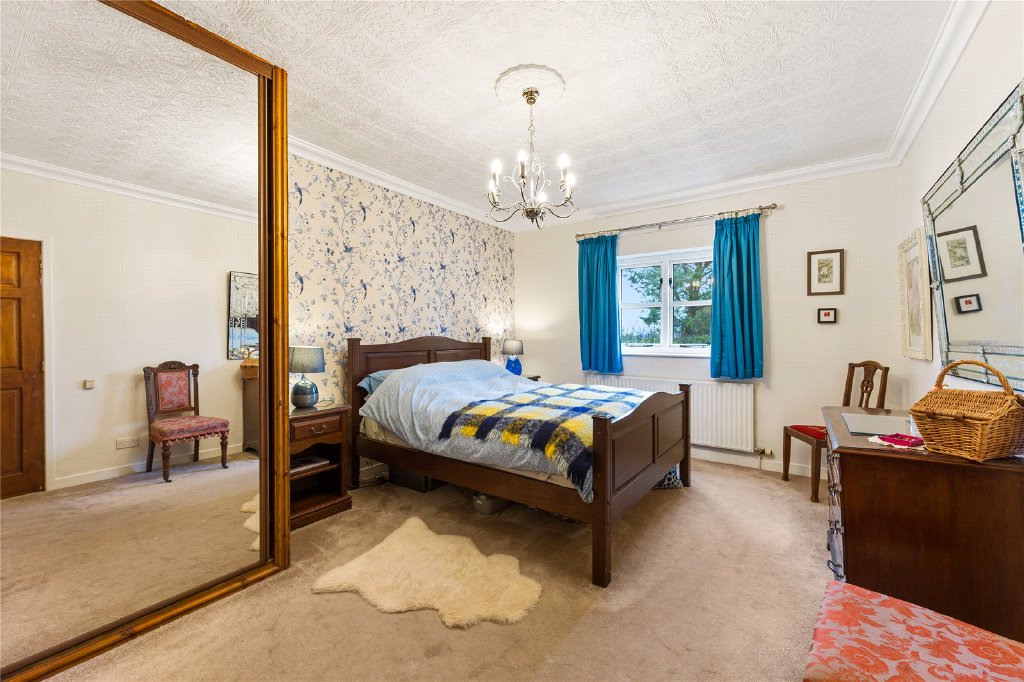 On the first floor there are four double bedrooms, and the principal bedroom features a built-in wardrobe. The family bathroom offers an elegant free standing Kohler bath, shower cubicle, pedestal washbasin, low level W.C, wood panelling & solid oak floor. There is a useful office with shelving. Airing cupboard & access to the roof space from the landing.