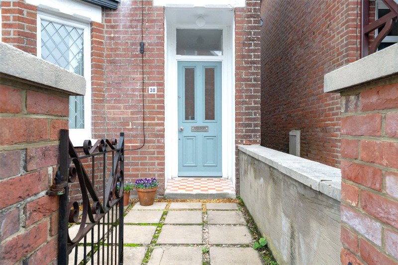 To the front there is a low brick wall with a wrought iron pedestrian gate leading to the front door. A shared side access leads to the nicely enclosed rear garden which has a gravelled and paved patio with exterior light, 2 raised beds and an open-fronted bike store/shed.