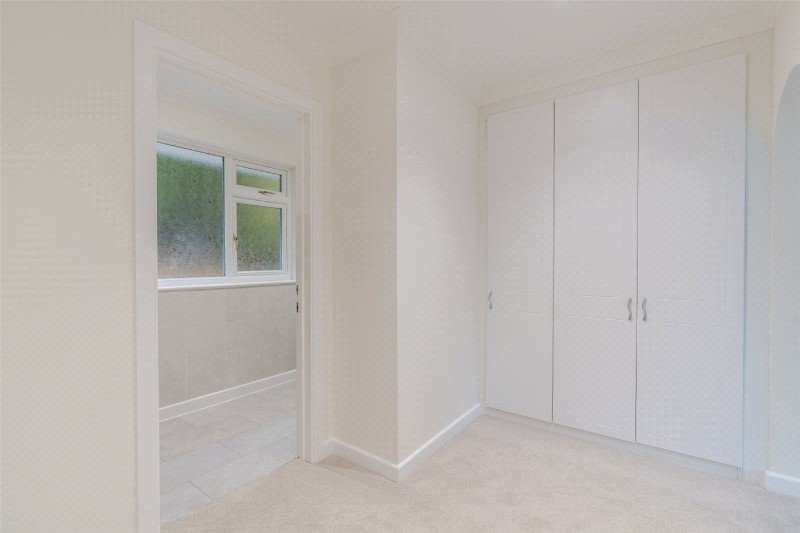 Bedroom 1 is a large double room with fitted drawers and views to the front, an archway to a dressing room (with fitted wardrobes), and an en suite shower room (with walk-in shower, WC, wash basin and towel radiator).