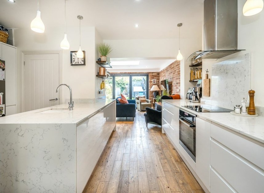 Arguably one of the finest houses in the street is this beautiful three bedroom mid terrace 1930's family home that has been renovated by the current owner to an exceptional standard throughout. Benefits include a downstairs W.C, off street parking and a large private garden complete with a studio / home office at the end.