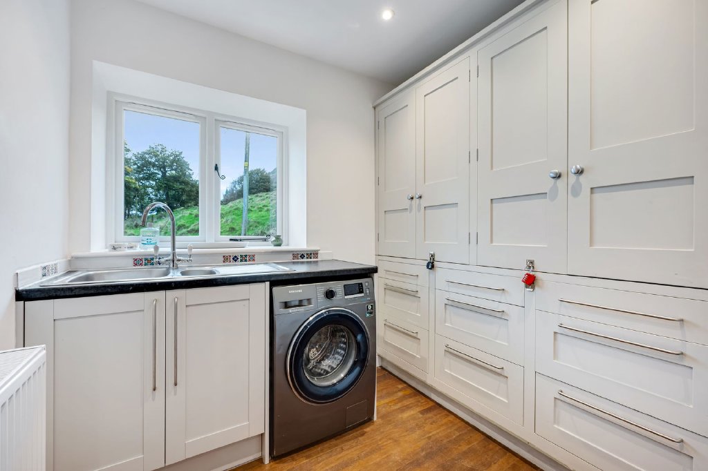 You are welcomed into this superb, newly refurbished property by the rear door and through the delightful entrance hall, where you can leave behind your muddy boots after a long day on the fells. From the entrance hall there is a convenient cloakroom with WC and washbasin, plus a handy utility space for all your daily essentials. The utility comprises base units with stainless steel sink, additional fitted cupboards and draws, and plumbing for washing machine and tumble dryer. Then, head into the well-equipped kitchen with beautiful original exposed beams, a centre island/breakfast bar with base units and NEFF induction hob, plus additional wall and base units surrounding the kitchen with NEFF oven and grill, free standing American Siemens fridge/freezer, free standing Bosch dishwasher, and a stunning outlook to the local countryside with bi-folding doors leading out to the front terrace area. A perfect place to sit with a morning coffee whilst taking in the countryside views!