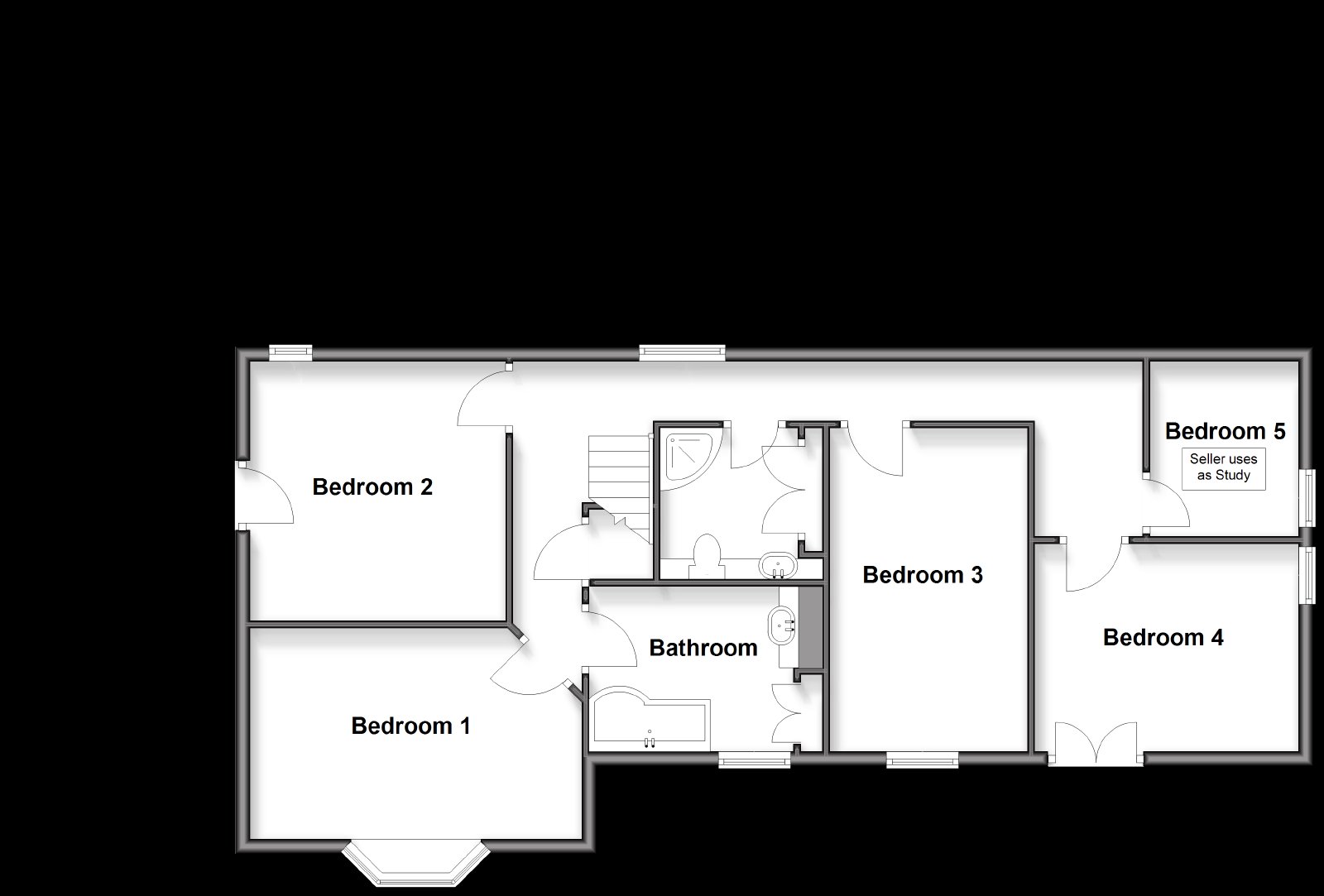 - Four double bedrooms with sea and downs views