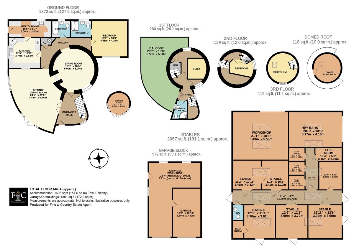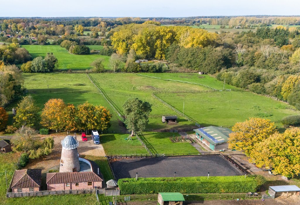 Country Life at a Full Gallop. With outstanding equestrian facilities and an iconic windmill at its heart, this three-bedroom property is ideal for buyers seeking rural seclusion, equine amenities, and architectural distinction, and has possibilities for additional accommodation. All this set in 10 acres (stms) and in easy reach of day-to-day amenities and with commuter links close by.