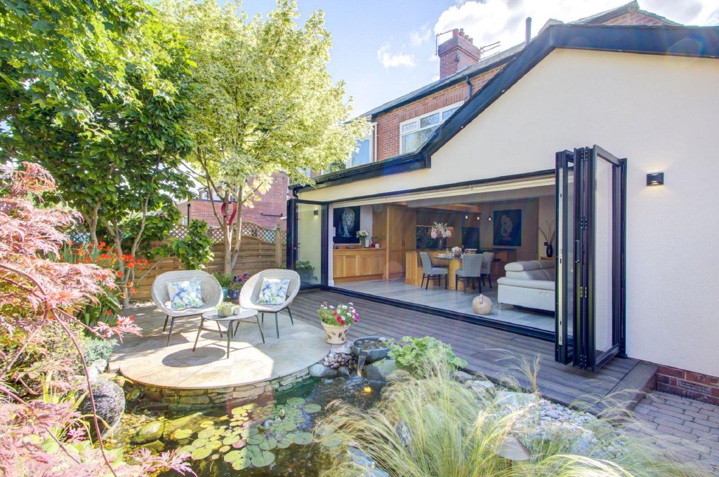 Outside, the garden offers a private sanctuary of calm and natural beauty. Designed by the award-winning JD Landscapes of Northallerton—renowned NEHS Gold Award and RHS medal recipients—this exceptional space has been thoughtfully crafted for year-round enjoyment. With mature planting, peaceful seating areas, and a cascading waterfall flowing into a tranquil pond, it’s a true retreat from the everyday. A spacious side passage provides easy access to the front of the property, and a large garden shed offers practical storage without compromising the garden’s serenity.