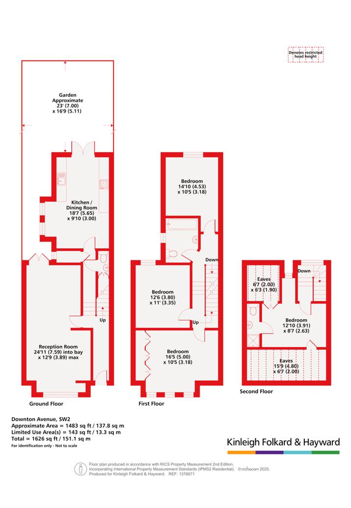 This elegant three-storey period home offers approximately 1,626 sq ft of versatile living space. The ground floor features a generous bay-fronted reception room and a bright kitchen/dining area that opens onto a private garden, perfect for entertaining. Upstairs, the first floor comprises three well-proportioned bedrooms and a family bathroom, while the top floor provides a spacious fourth bedroom with eaves storage and an en-suite shower room. Combining period charm with modern convenience, this property is ideal for those seeking a stylish and comfortable home in a desirable London location.