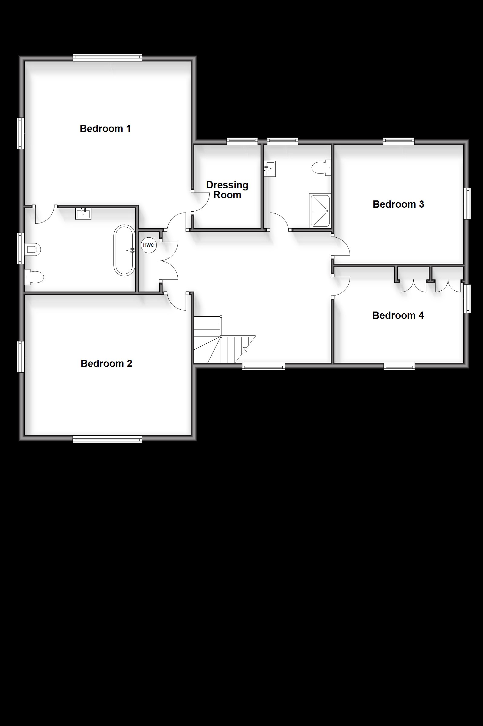 - Four double bedrooms including a vaulted one with a dressing room and en suite bathroom