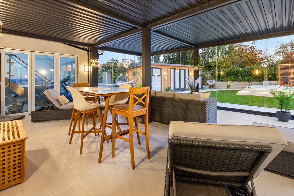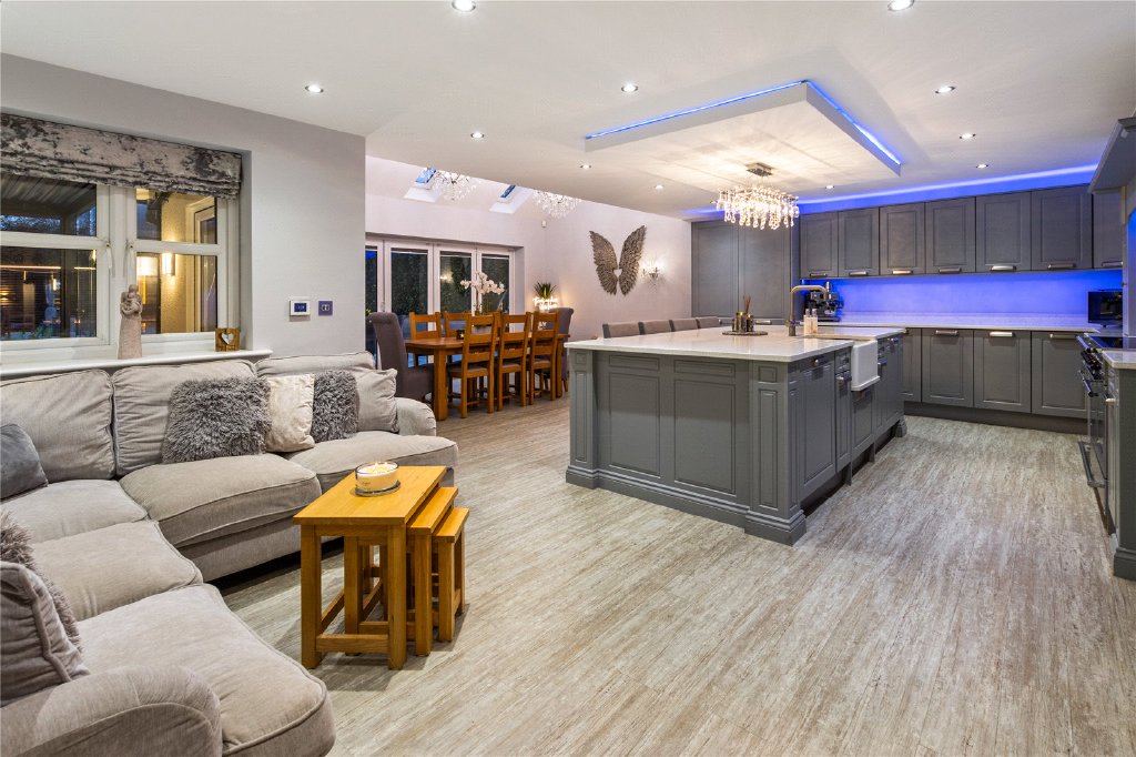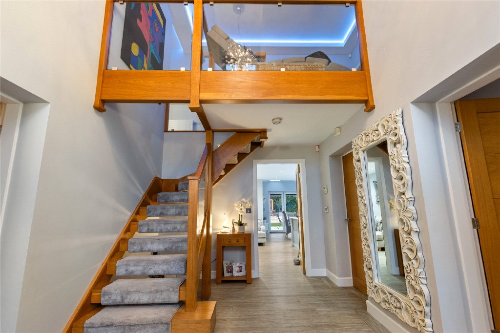 Set along a quiet private drive, The Larches is a striking modern home blending contemporary design with luxury living. Light-filled spaces, high-end finishes, and beautifully landscaped gardens make it ideal for both family life and entertaining.