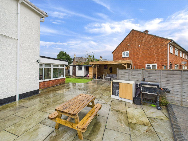 Outside, the wrap-around enclosed rear garden continues to impress. A covered seating area provides a perfect spot for year-round use, and a brick-built shed offers excellent storage. The attractive front garden enhances kerb appeal, and the driveway provides parking for two cars.