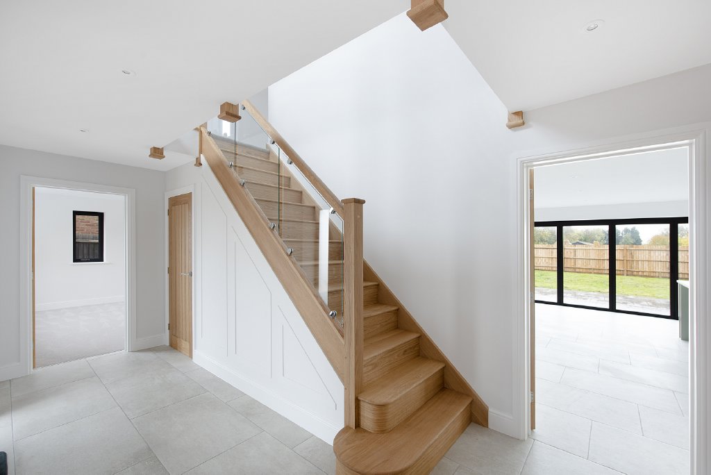 Stepping inside, a spacious entrance hall with a stunning oak and glass staircase immediately sets the tone for what's to come, light-filled rooms, elegant styling, and quality throughout.
