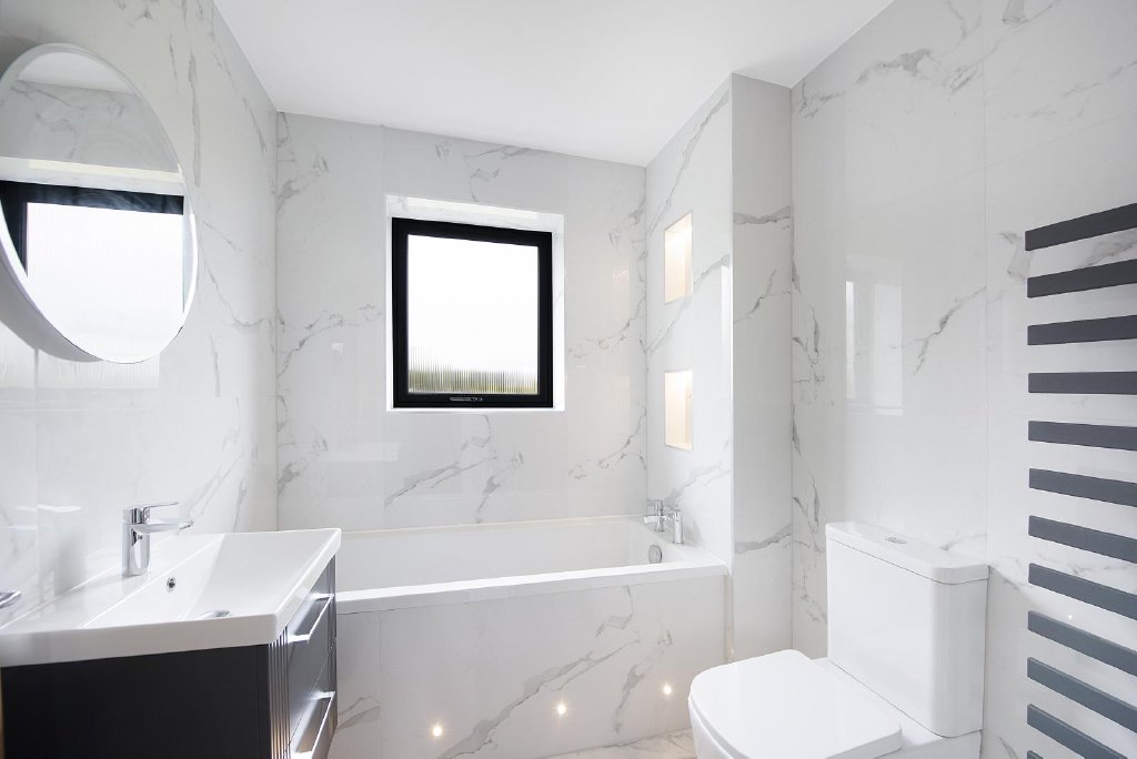 Upstairs, four spacious double bedrooms are served by two luxurious en suites and a stylish family bathroom, all featuring high-quality fittings and full-height tiling. The principal suite is a true sanctuary, complete with a separate bath and walk-in shower, inset lighting, and a calming, spa-like atmosphere. All bedrooms include built-in wardrobes, offering both convenience and elegance.