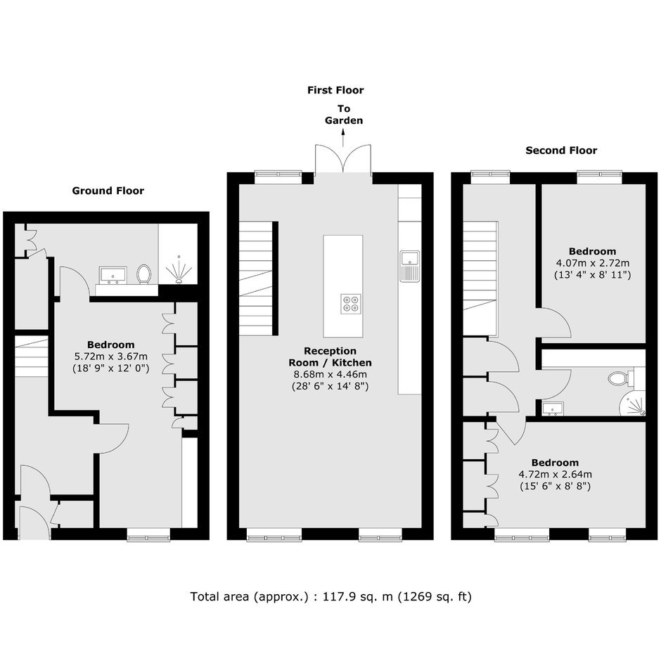 A beautifully presented three bedroom modern townhouse arranged over three floors, offering generous living space, contemporary interiors, a private garden and off street parking.