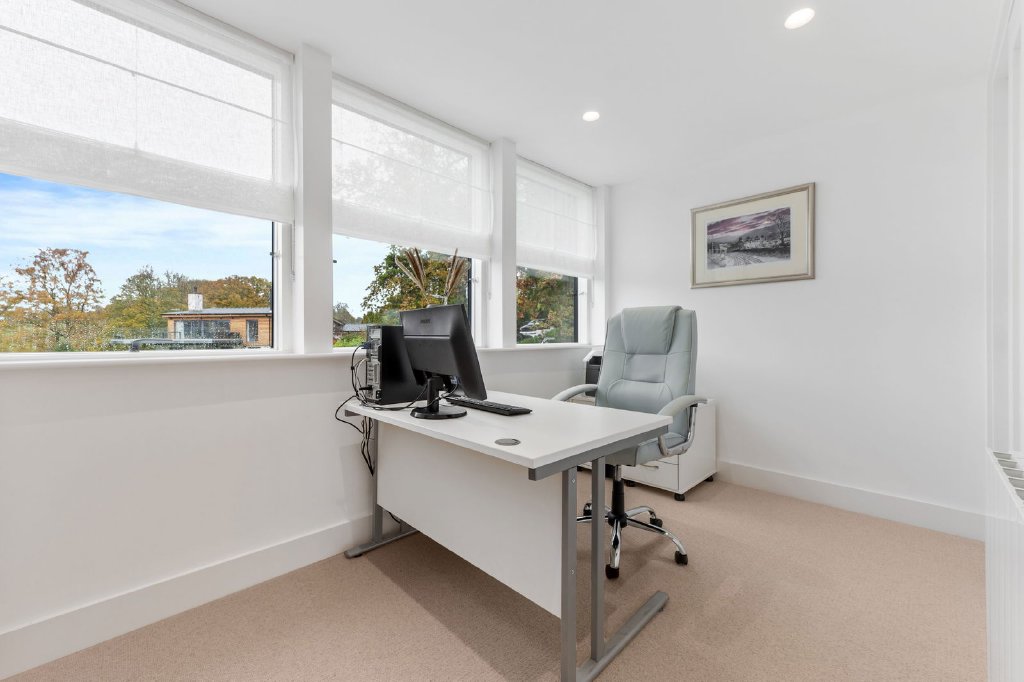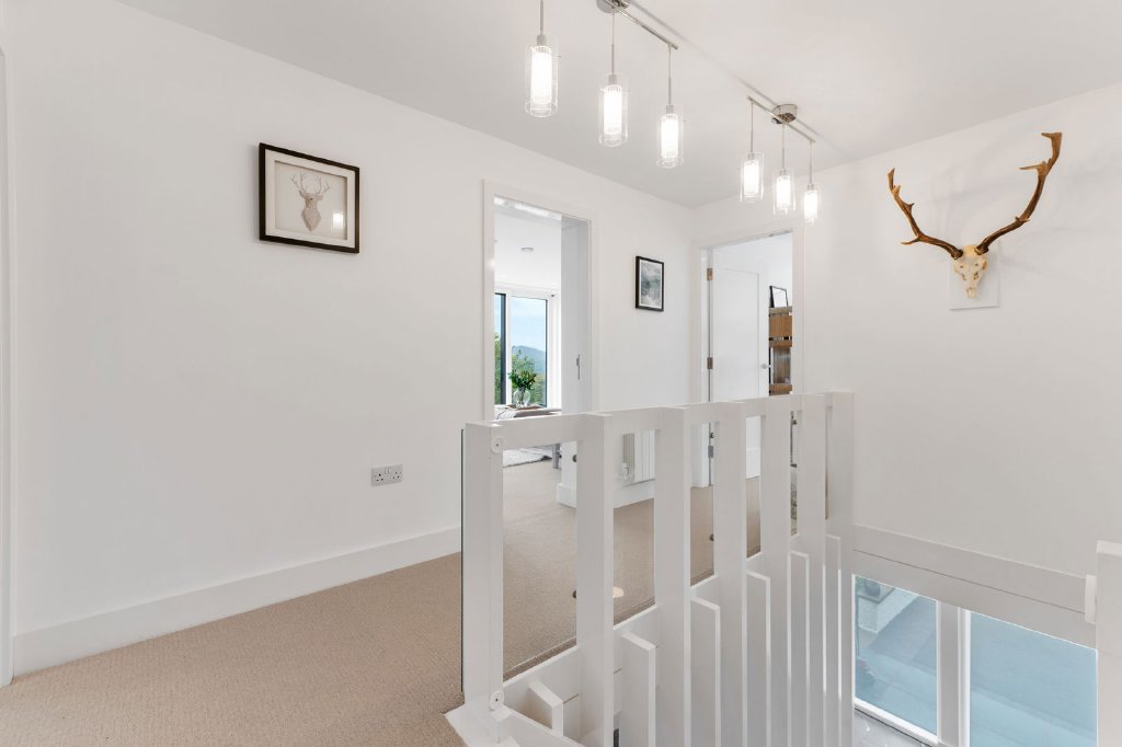 A truly distinctive, four bedroomed detached home defined by calm and clarity. Minimalist, clean lines, soft and subtle textures, bespoke joinery and an elegant, subtle colour palette reflecting the extraordinary views from the house all combine to create continuity throughout the home, with rooms and spaces feeling open, serene, and considered. Greenlands is refined and elegant in the aesthetic as well as being eminently practical; easy to run, comfortable to live in and technologically advanced. The addition of a living roof enhances the home's sustainable design, seamlessly blending with its natural surroundings while providing additional insulation and improving energy efficiency.