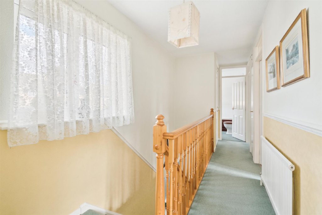 Staircase rising to a galleried landing accommodating an airing cupboard, loft access and store cupboard.
