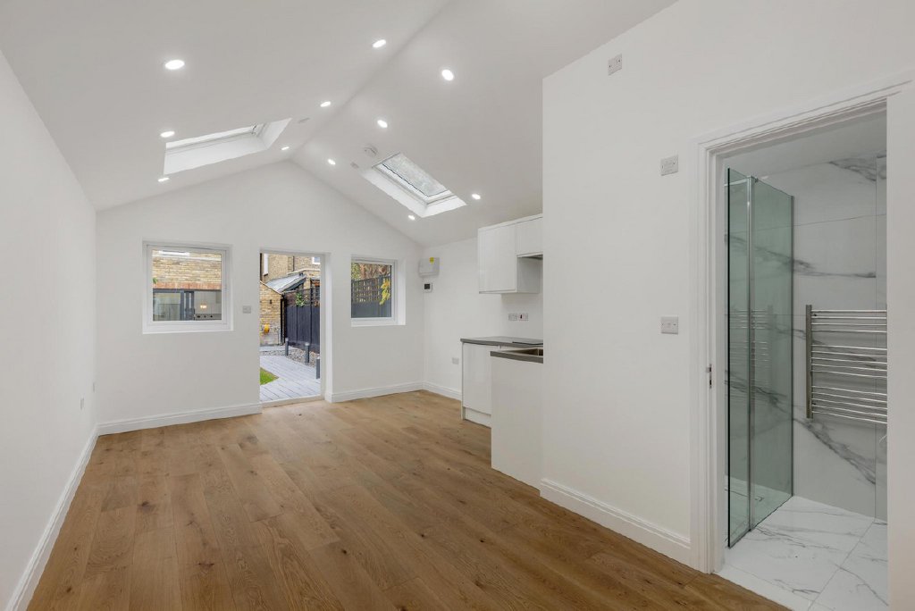 On Harbord Street, moments from Bishops Park, this newly refurbished six-bedroom, six-bathroom home spans over 3,000 sq ft, combining elegant contemporary design with generous living space, a south-facing garden, and a self-contained guest house—ideal for modern family living.