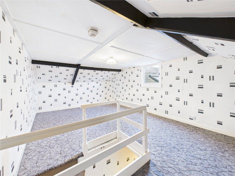 On the first floor are two comfortable and spacious bedrooms, both with fitted cupboards, and a family bathroom, while the top floor boasts a generous loft room, providing an additional versatile living area or potential third bedroom.