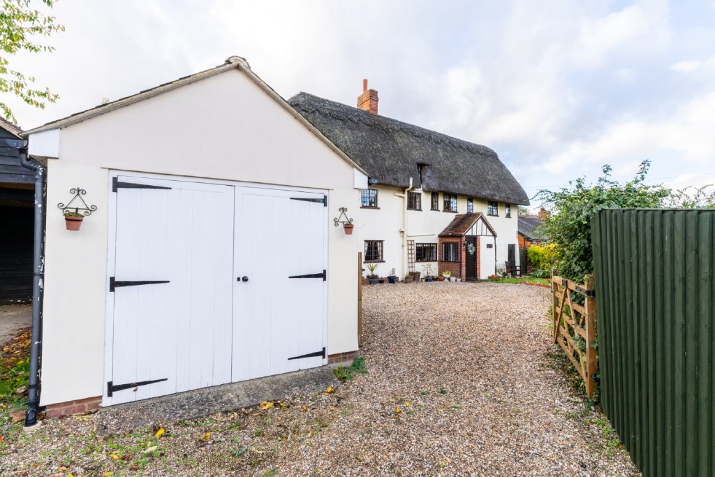 The property enjoys a detached garage with an adjoining summer house, as well as a gravelled driveway offering excellent parking. The gardens are predominantly to the front of the cottage, beautifully divided between a gravelled parking and turning area, a well-maintained lawn with established borders, and a terrace surrounding a charming pond. There is also outside lighting, water supply, and an oil tank. The garden enjoys a high degree of privacy.