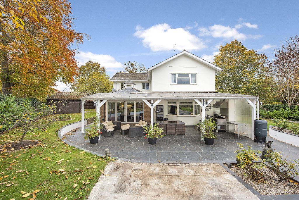 “Inside, the bespoke ‘cognac ash’ study, created by the same craftsman who fitted out a room at 10 Downing Street, still looks brand new. A former garage is now an office with a bedroom and en suite above, plus utility room beside it, perfect as a future annexe. There is a new double garage, car port and parking for 6–10 cars behind electric gates. Outbuildings include a gym, huge, heated greenhouse, and secure wraparound garden ideal for children and dogs to safely run around.