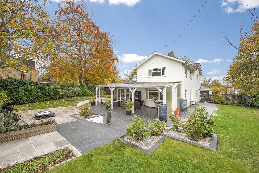 Set discreetly behind electric gates in the sought-after village of Offord D’Arcy, this impressive five/six-bedroom detached home occupies a generous corner plot of approximately one-third of an acre. Offering over 3,000 sq. ft. of beautifully appointed accommodation and thoughtfully designed outdoor entertaining spaces, it perfectly balances refined family living with modern versatility.