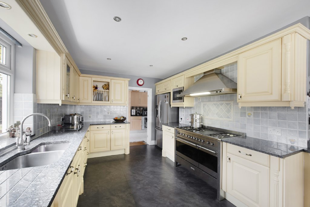 Inside, the ground floor flows seamlessly between elegant and functional spaces. A welcoming vestibule opens into a bespoke fitted study, crafted in rich cognac-stained ash, while multiple reception rooms provide versatility for family life and entertaining. Highlights include a snug with inglenook fireplace, formal dining room, spacious family lounge, and a bright orangery with roof lantern and air conditioning. The kitchen is superbly equipped with granite worktops and premium appliances, complemented by a separate utility room and an adaptable sixth bedroom or annexe room.