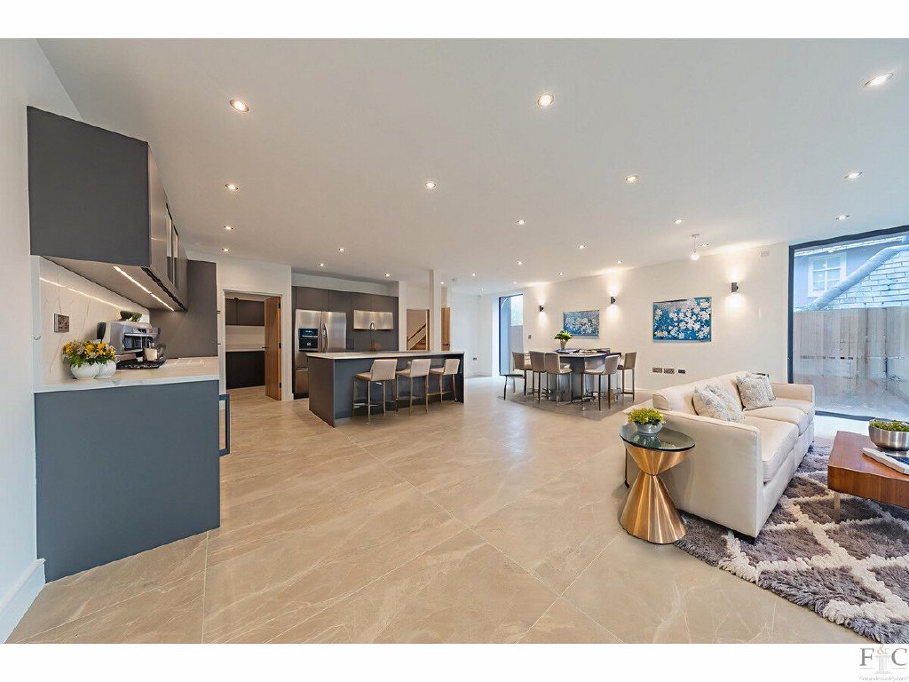 Spanning approximately 3,400 sq ft across three floors, this exceptional seven-bedroom, seven-bathroom residence has been carefully planned for modern family living. Every space has been considered to combine light, texture, and warmth in equal measure.