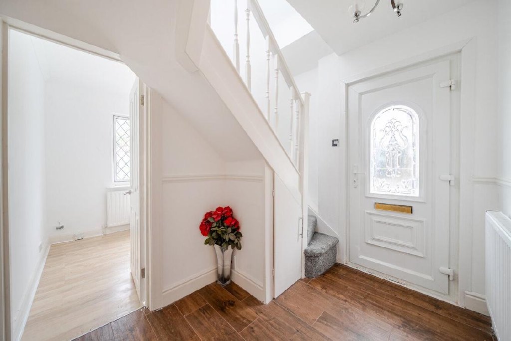 The property is presented to the market with no onward chain and has undergone a comprehensive refurbishment, ensuring a modern and inviting living environment. Upon entering, you are greeted by a grand entrance hall that sets a sophisticated tone for the rest of the home.