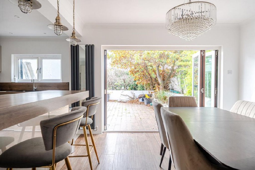 Nestled on a tranquil residential street and encompassing over 1,400 square feet, this remarkable three-bedroom chalet bungalow, complete with a separate annexe, is conveniently located near a variety of local amenities, esteemed schools, transport links, and popular green spaces.