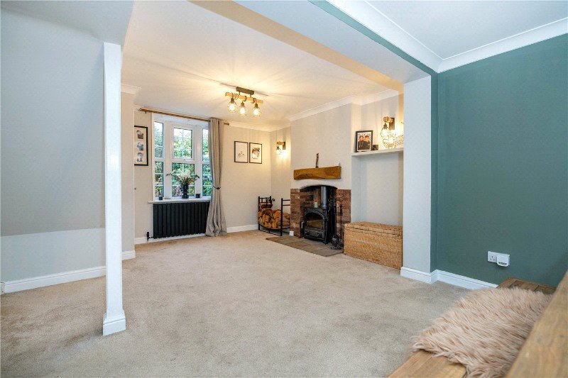 The entrance porch opens into a welcoming hallway which leads through to four separate reception rooms, giving plenty of options for relaxing, entertaining or working from home. The main lounge has a lovely, homely feel with an exposed brick fireplace, log burner and solid oak mantle. The adjoining snug and dining room offer further cosy spaces, all finished in soft tones and filled with natural light.