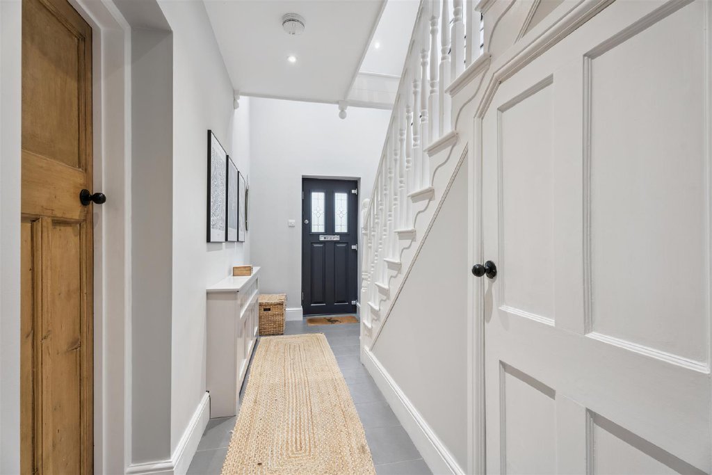 Ground Floor - The property is entered via a part glazed door into the entrance hall which is full height with a Velux window to the front aspect. Tiled flooring. Understairs storage cupboard. Door to the kitchen/dining room. Door to the sitting room.
