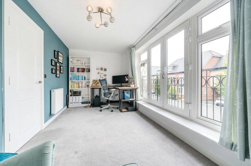 The top floor is home to the master suite, featuring built-in wardrobes and a stylish en-suite shower room. Also on this level is a third bedroom, perfectly suited as a child’s room, nursery, or home office providing excellent flexibility for a growing family.