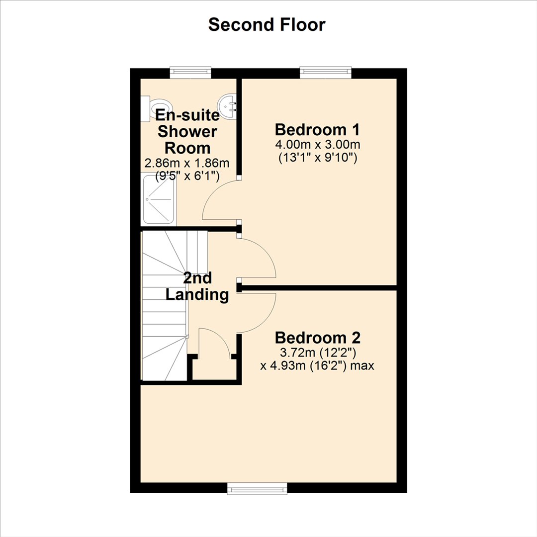 Bedroom 2 - 3.72m x 4.93m (12'2" x 16'2") -