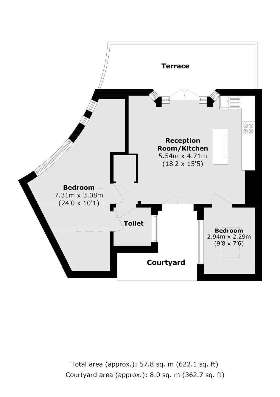 As you enter Ferry Quays House you will be captivated by the attention to detail. The open plan living area is bright and spacious, featuring herringbone flooring. The modern statement kitchen has sleek work tops, a kitchen island and top of the range integrated appliances, including Quartz worktops, perfect for entertaining. The principle bedroom offers fitted wardrobes, providing ample storage and a Jack and Jill bathroom, ensuring the main bedroom is also en suite. There is a second bedroom/home office. Further benefits include air conditioning, blue-tooth speakers in the ceiling and a lovely courtyard garden, ideal for al fresco dining.