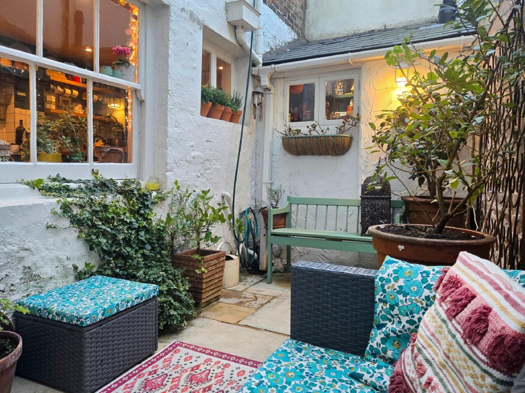 On the ground floor a pretty, paved courtyard provides a quiet and private outdoor space. With ample space for a table it is a perfect outdoor space for a green wall or planters.